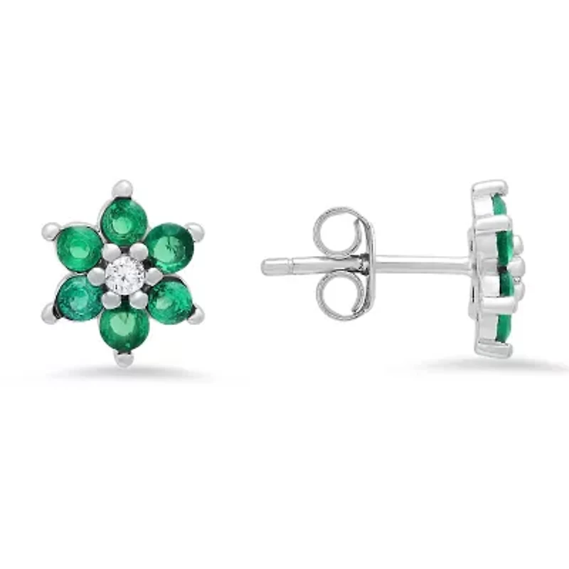 Sterling Silver Petite Sapphire CZ Floral Stud Earrings in Franklin, TN
