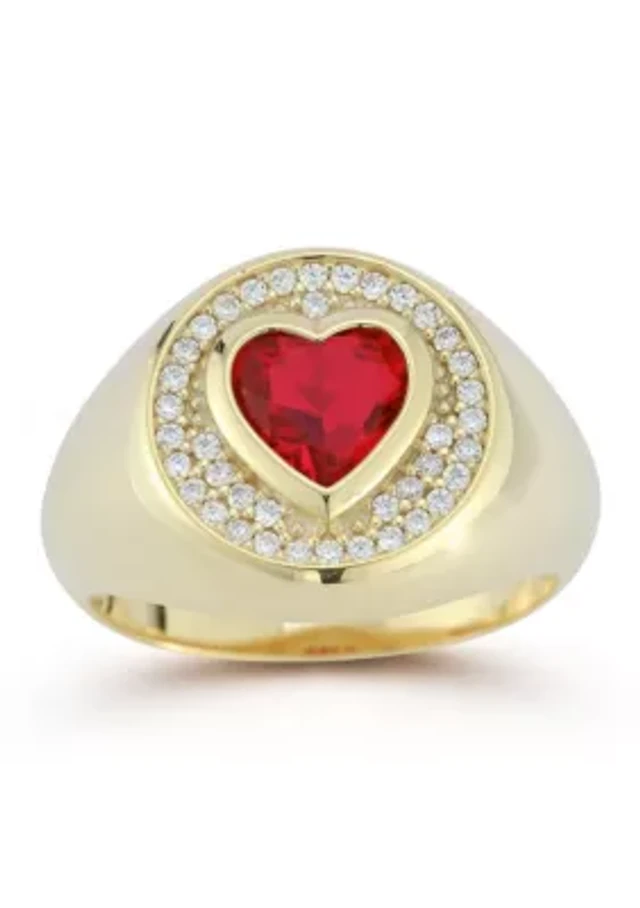 Sterling Silver Red Cubic Zirconia Heart Signet Ring