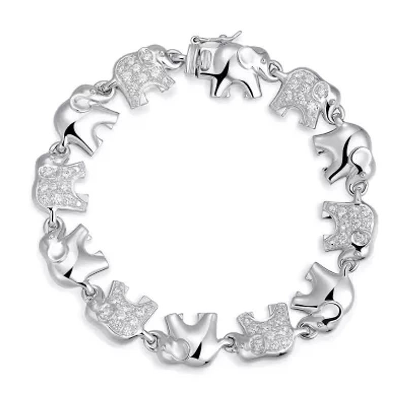 Sterling Silver Rhodium Plated Cubic Zirconia Elephant Bracelet 6.75-8" in Franklin, TN