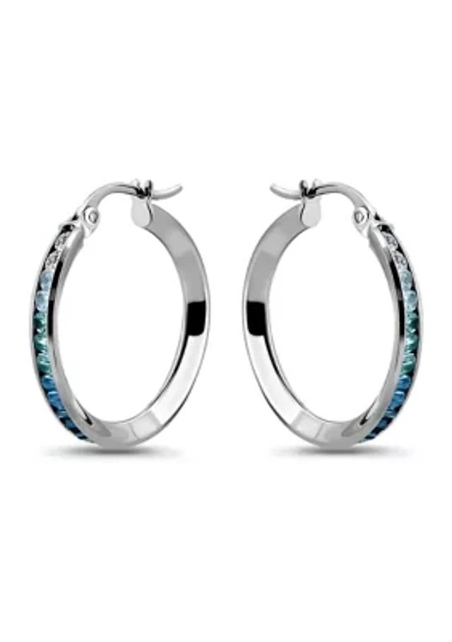 Sterling Silver Round Blue Ombré Cubic Zirconia Hoop Earrings