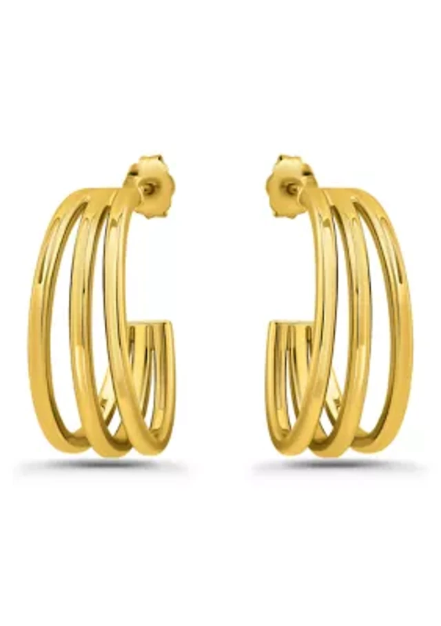 Diamond-Cut Triple Row Hoop Earrings in Sterling Silver