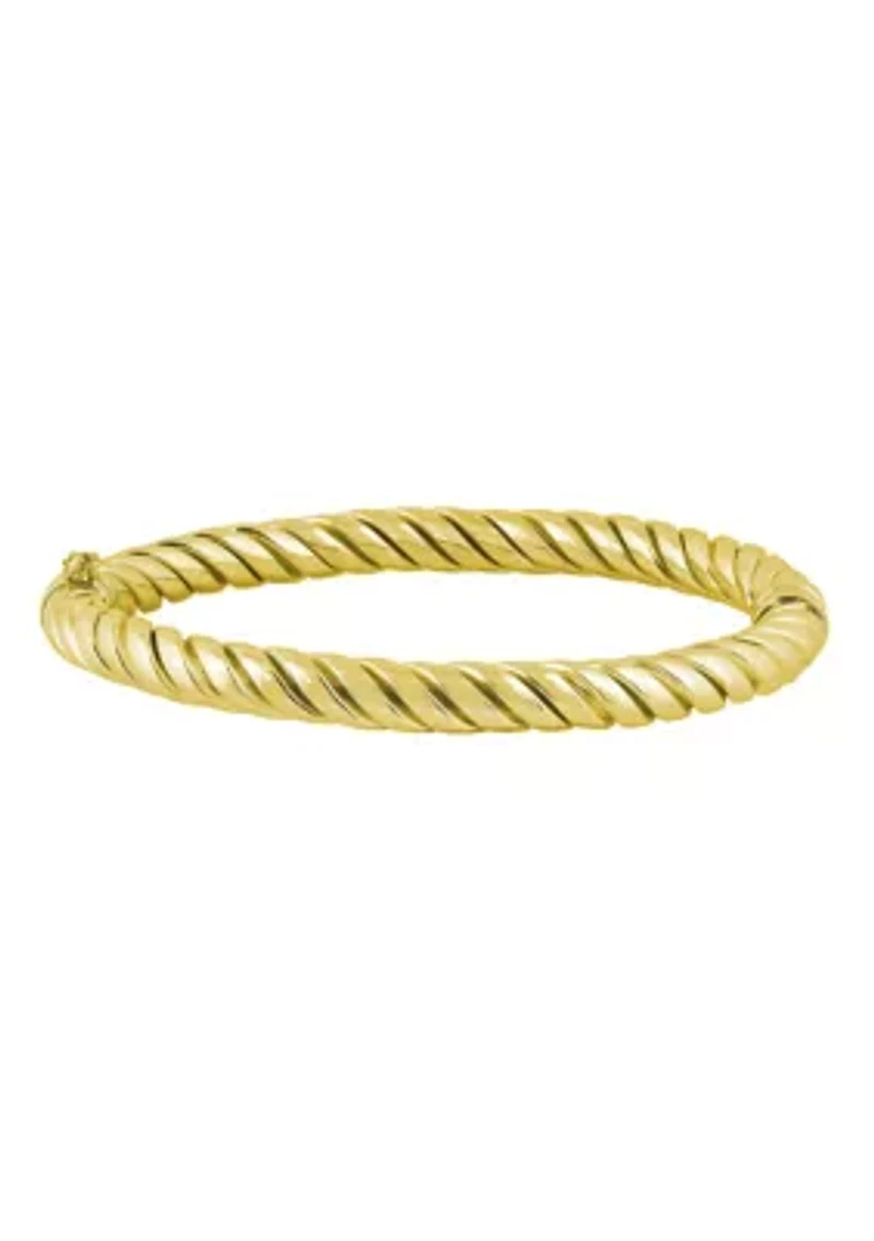 This bold bangle is sure to stand out with its twisted rope design. Available in your choice of Sterling Silver or 14K Gold Plated Sterling Silver. Box clasp Polished finish Italy Imported Belk Exclusive Product Specifications 7 Inches Material & Care Metal, Gold plated Clean with a soft cloth.