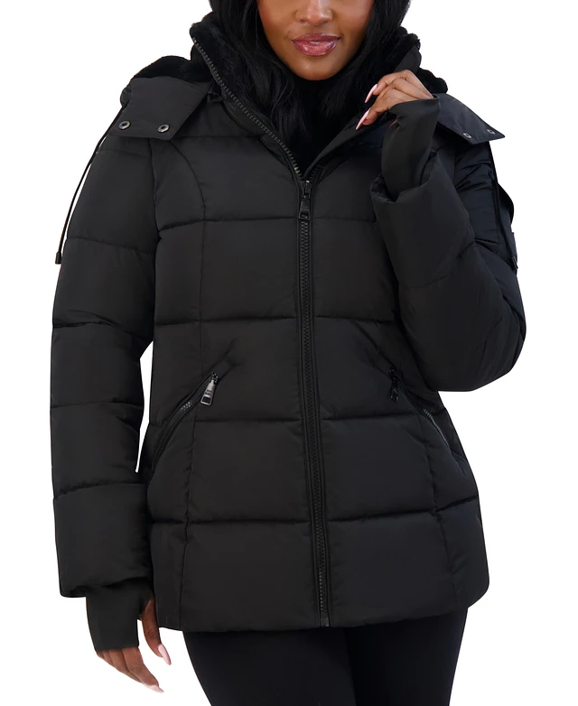 Steve Madden Women's Faux-Fur-Trim Hooded Puffer Coat
