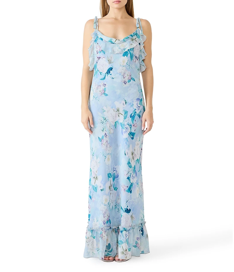 Steve Madden Malenna Floral Print Cowl Neck Sleeveless Chiffon Maxi Dress