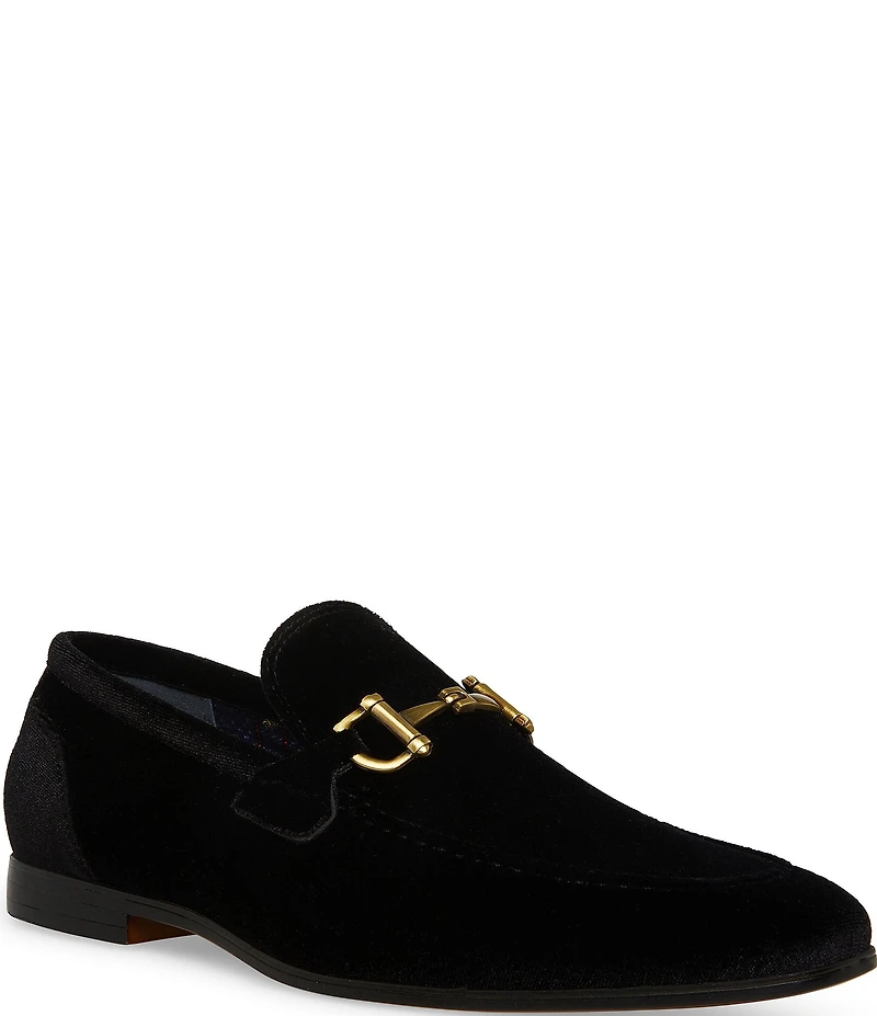 From Steve Madden, the Men's Madly Velvet Bit Buckle Dress Slip On Loafers feature: Velvet upper Bit buckle embellishment Slip on styling Fabric lining Rubber outsole Imported.