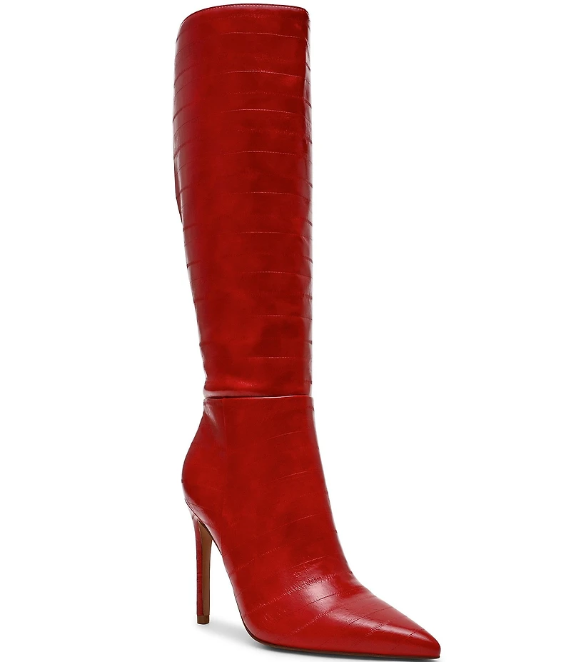 From Steve Madden, the Nitro Eel Print Pointed Toe Stiletto Boots feature:  Synthetic upper Zipper closure  Fabric and synthetic lining Synthetic outsole  Approx. 16'' boot shaft height Approx. 14.75'' standard boot shaft circumference  Approx. 4'' heel height Imported.