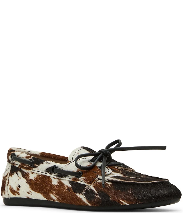 Steve Madden Sag Bow Detail Cow Print Haircalf Boat Shoes