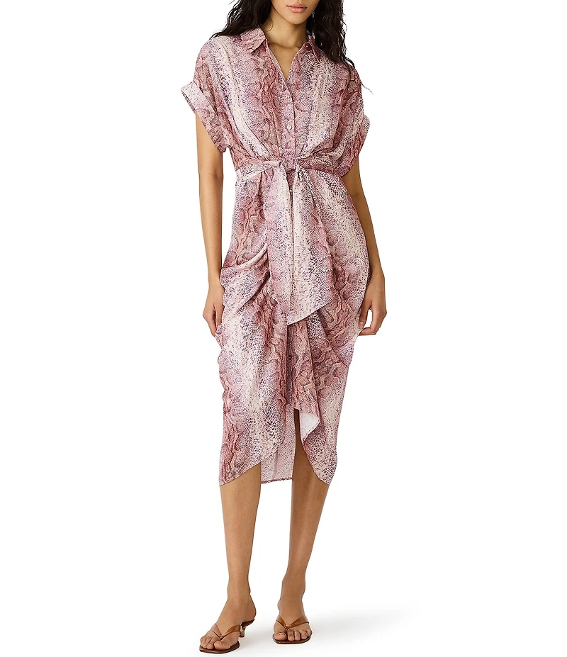 Steve Madden Tori Snake Print Point Collar Short Kimono Cuff Sleeve Tie Front Midi Shirt DressSteve Madden Tori Snake Print Point Collar Short Kimono Cuff Sleeve Tie Front Midi Shirt DressSteve Madden Tori Snake Print Point Collar Short Kimono Cuff Sleeve Tie Front Midi Shirt Dress
