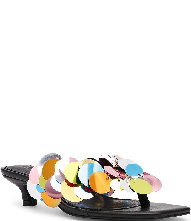 Steve Madden Tracie Paillette Kitten Heel Thong Dress Sandals
