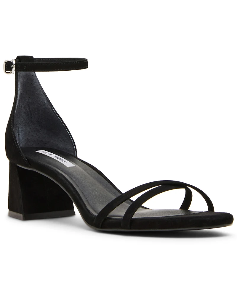 Nubuck straps and block heels lend a modern, architectural feel to these Steve Madden sandals. An adjustable closure ensures a customizable, comfortable fit for all-day wear.