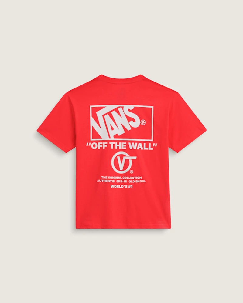 This classic T-shirt brings Vans' iconic heritage to your everyday look. The soft cotton fabric keeps you comfortable, while bold Vans graphics on the chest and back showcase the brand's skate culture roots. With a relaxed fit and ribbed crew neckline, it's an easy go-to for casual, laid-back style that feels authentically Vans.