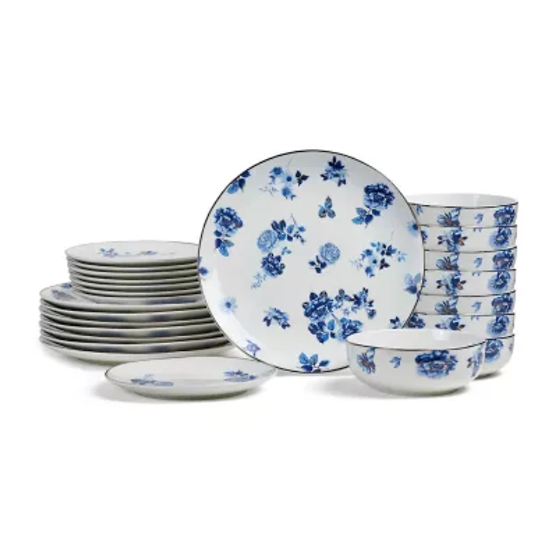 Meet Viola, Stone Lain Gallery Collection round dinnerware set that isn't just tableware, it's the centerpiece. Drawing inspiration from traditional Delftware, Viola brings beautiful blue flowers to life with gold accents on a white porcelain backdrop. It's bold, yet delicate; classic, yet modern. To preserve its beauty it's suggested to handwash only.