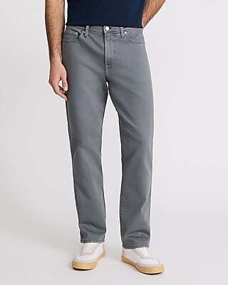 Straight through the thigh and leg, these gray jeans are complete with just enough stretch for all day comfort. They feature a zip fly, one button closure, belt loops, and traditional five pocket styling.