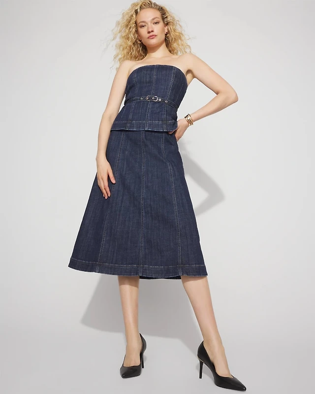 Crush-Worthy Strapless Denim Bodycon Midi Dress