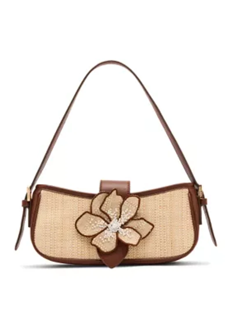 Add a touch of elegance to any look with this Anne Klein satchel bag. Its unique straw design offers a chic vibe that effortlessly elevates any outfit. Shoulder strap with 9.7" drop Exterior: 3D floral detail Interior: zip pocket, three card slots Imported Product Specifications 4.7" H x 9.6" L x 3.5" D Material & Care Self-color stitch trim PVC Clean with a damp cloth or soft brush
