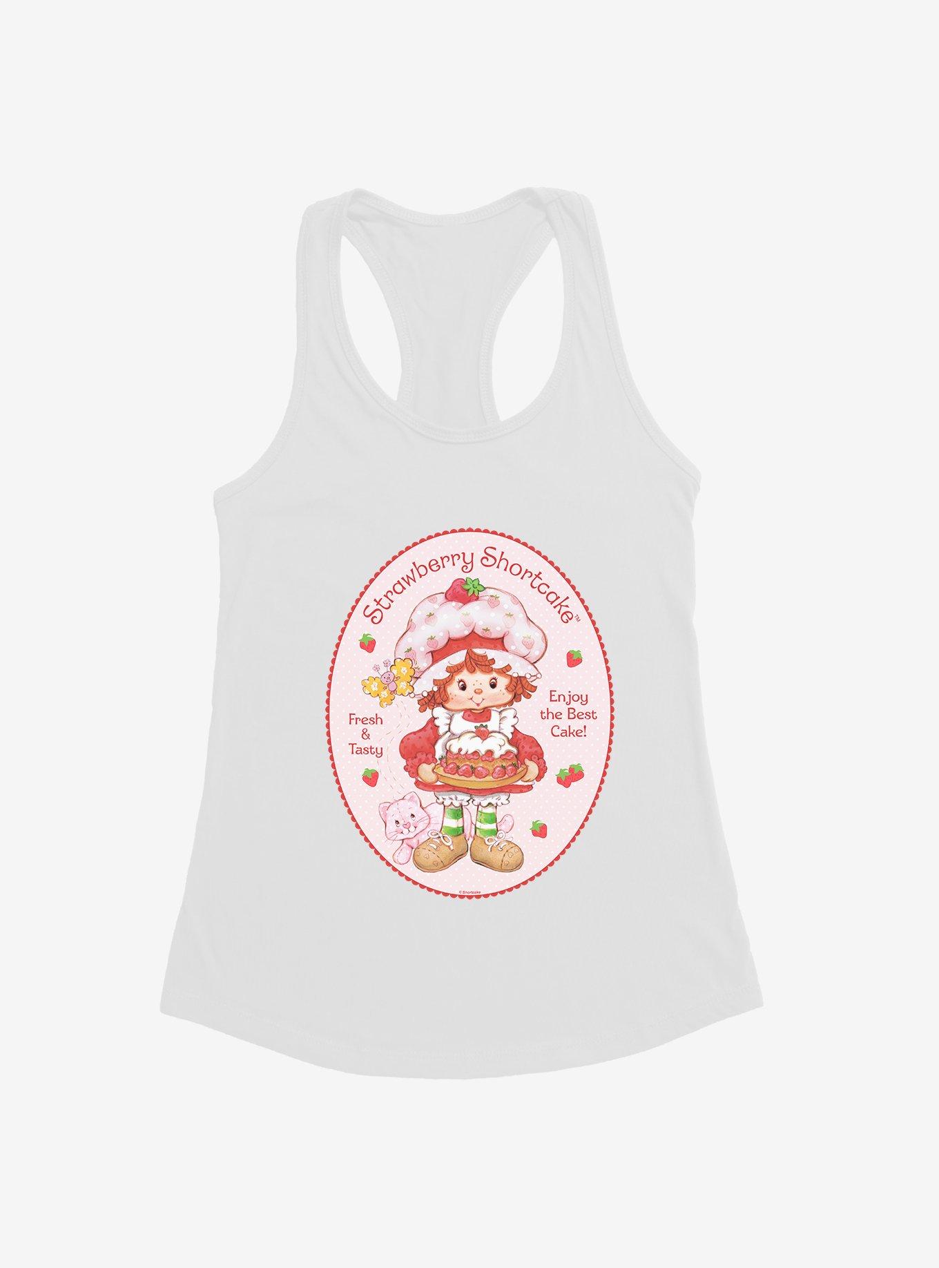 Always fresh... guaranteed! Rep Strawberry Shortcake -- the girl with the best cakes -- by wearing this racerback tank. It features the lil baker herself, along with a butterfly and Custard the cat.