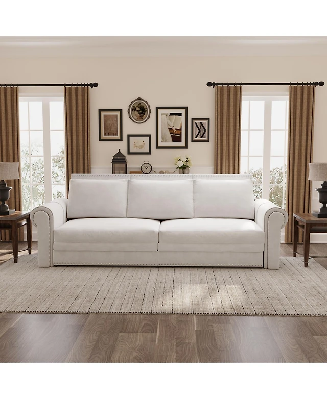Maison Boucle 93.7" Faux Leather King Pull Out Sofa Bed, 3-in-1 Convertible Sleeper Couch with Rolled Arms & Nailhead Trim for Living Room-Maison Bouc