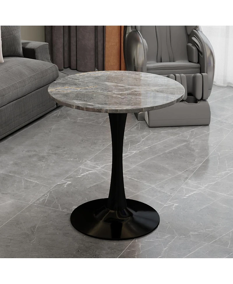 Elevate your Nordic-style home with this minimalist table. Featuring a faux-marble top and black pedestal, it blends classic contrast with simple elegance. Perfect for books, drinks, or decor.
