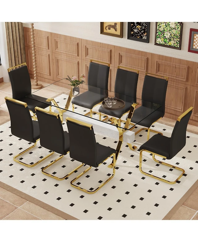 Streamdale Elegant Glass Dining Set with 8 Pu Chairs (71"x35.4")