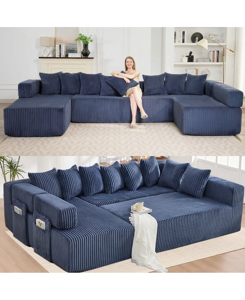 Experience ultimate relaxation with this 146"" U-shaped modular sofa. Customize your layout, enjoy ample seating for gatherings, and relax with 8 included pillows. Easy assembly.