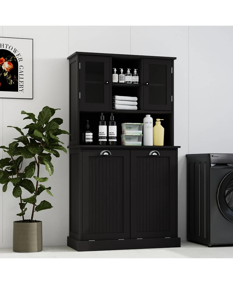 Streamdale Furniture 2-Compartment Tilt-Out Laundry Basket Cabinet with Shelves