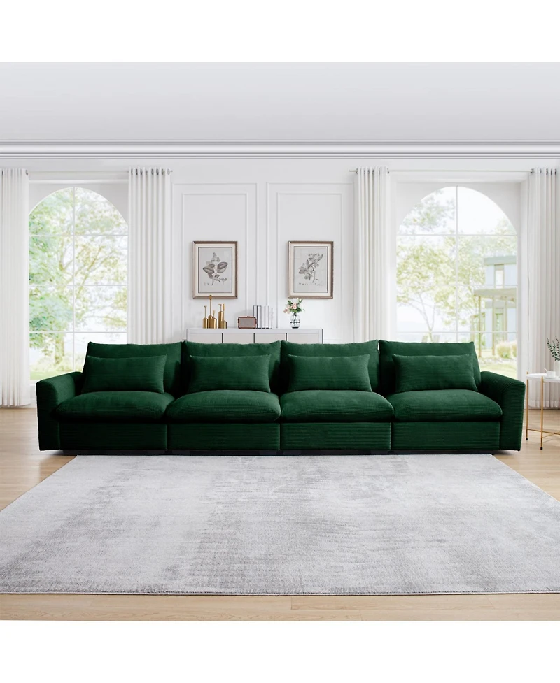 Streamdale Furniture 4 Seater Green Corduroy Sofa with 4 Waist Pillows
