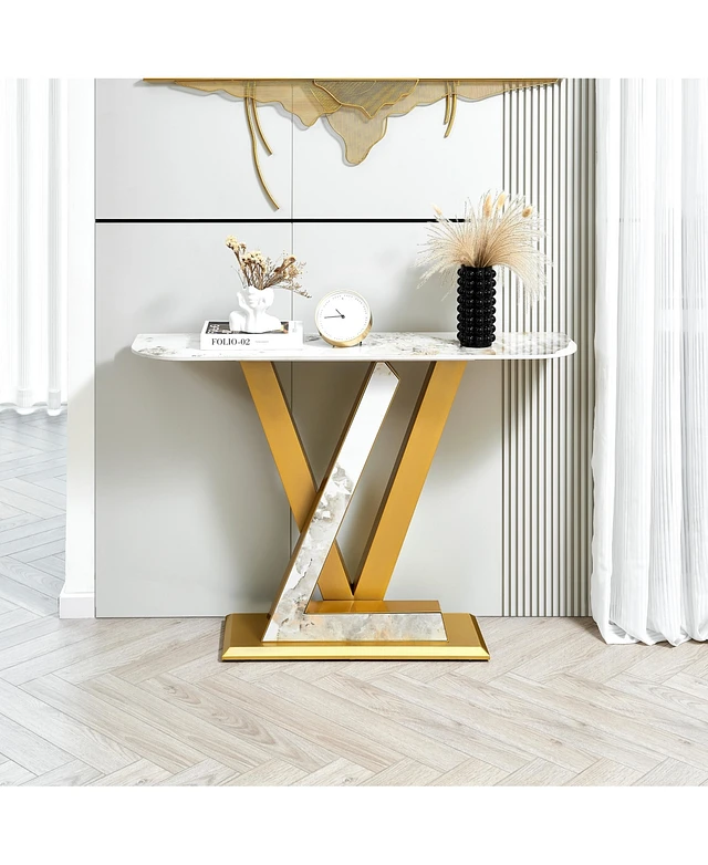 Streamdale Furniture 47" Sintered Stone Console Table with Metal Frame (Gold)