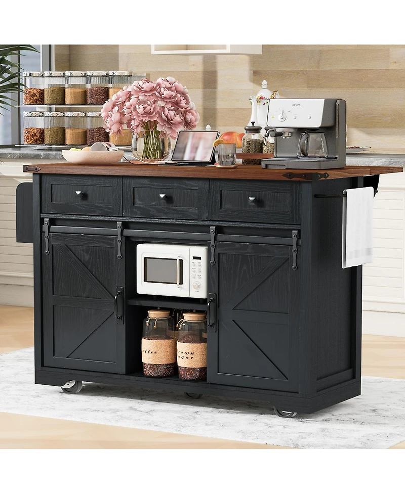 Streamdale Furniture Farmhouse Kitchen Island Power, Drop Leaf, Barn Doors