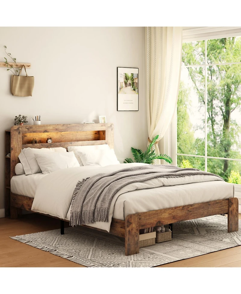 Streamdale Furniture Full Bed Frame with Led Headboard, Usb Ports & Storage