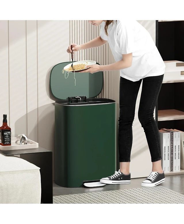 Home Zone Living 13 Gallon Dual Compartment Stainless Steel Kitchen Trash Can with Step Pedal and Soft Close Lid