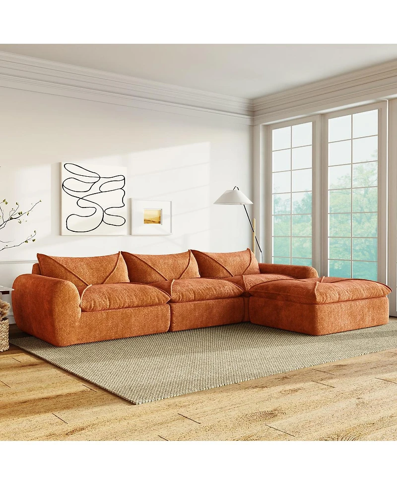 Experience ultimate comfort and safety with our all-sponge sofa. No assembly needed, just unpack and enjoy! Its modular design and movable ottoman offer endless arrangement possibilities. Perfect for families with infants and elderly.