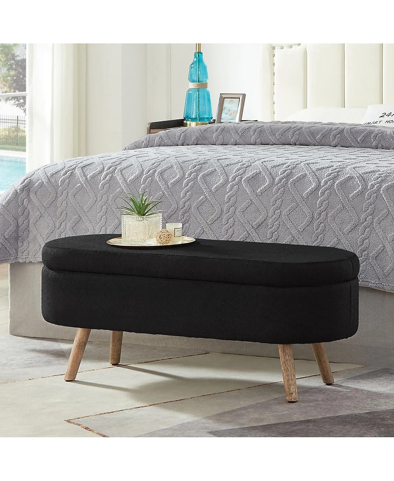 Streamdale Furniture Luxury Oval Boucle Storage Ottoman Bench with Wood Legs