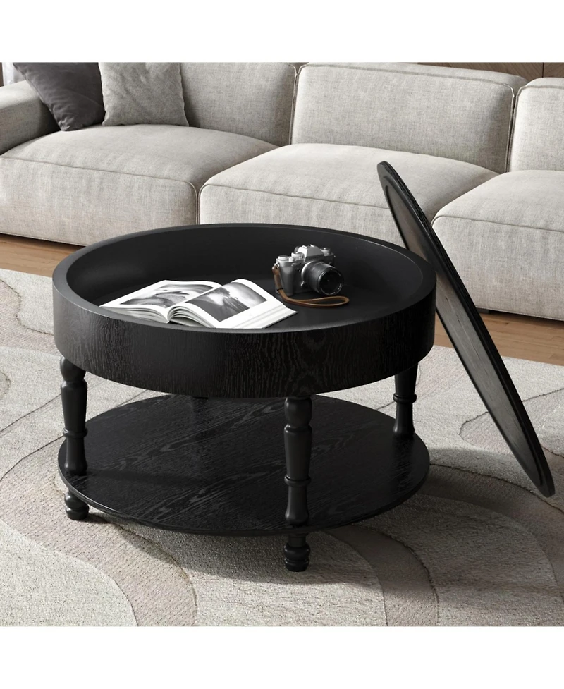 Streamdale Furniture Modern Round Coffee Table with Storage - Black in Franklin, TN