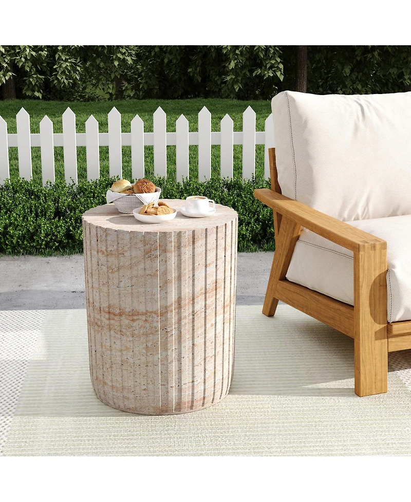 Streamdale Furniture Outdoor/Indoor Lightweight Concrete Side Table,Travertine Finish