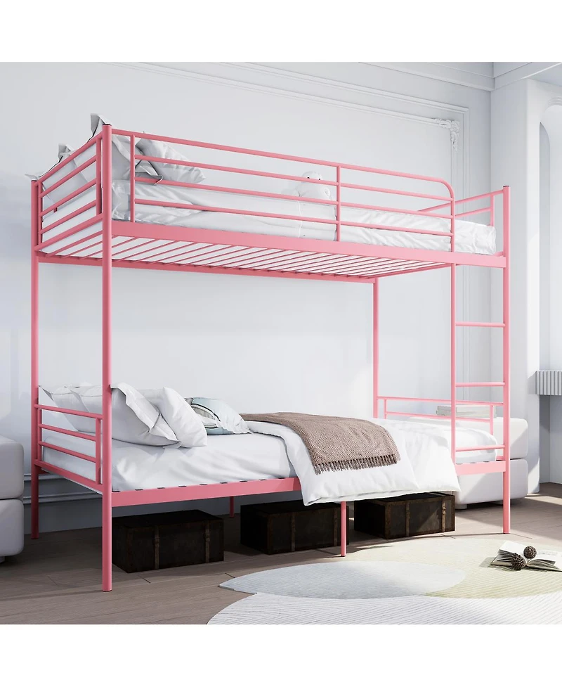 Streamdale Furniture Pink Twin Over Twin Metal Bunk Bed with Ladder, Guardrail, Storage, Noise Free