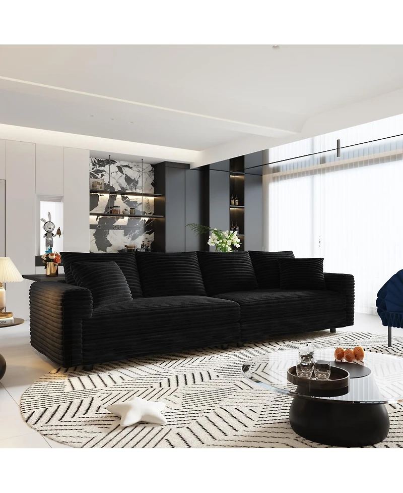 Streamdale Furniture Plush Corduroy 4-Seat Sofa, Modern Comfy Cloud Couch with Soft Pillows