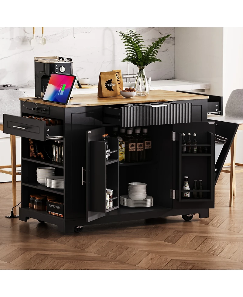 Streamdale Furniture Rolling Kitchen Island Trash, Power