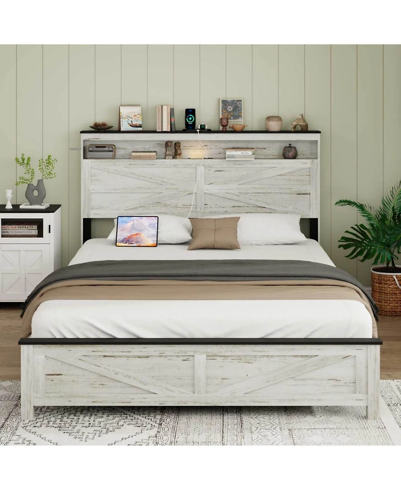 Streamdale Furniture Streamdale Queen Led Bed Frame with Charging & Storage - White in Franklin, TN