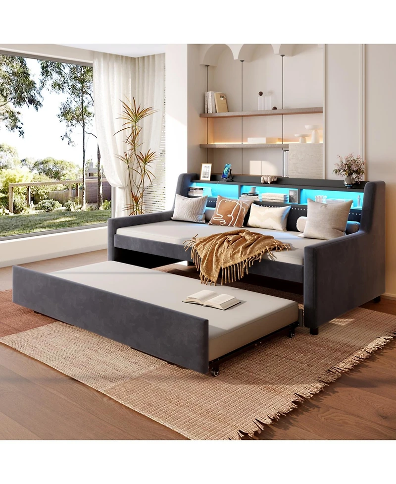 Streamdale Furniture Streamdale Twin Size Upholstered Daybed with Led & Charging Station in Franklin, TN