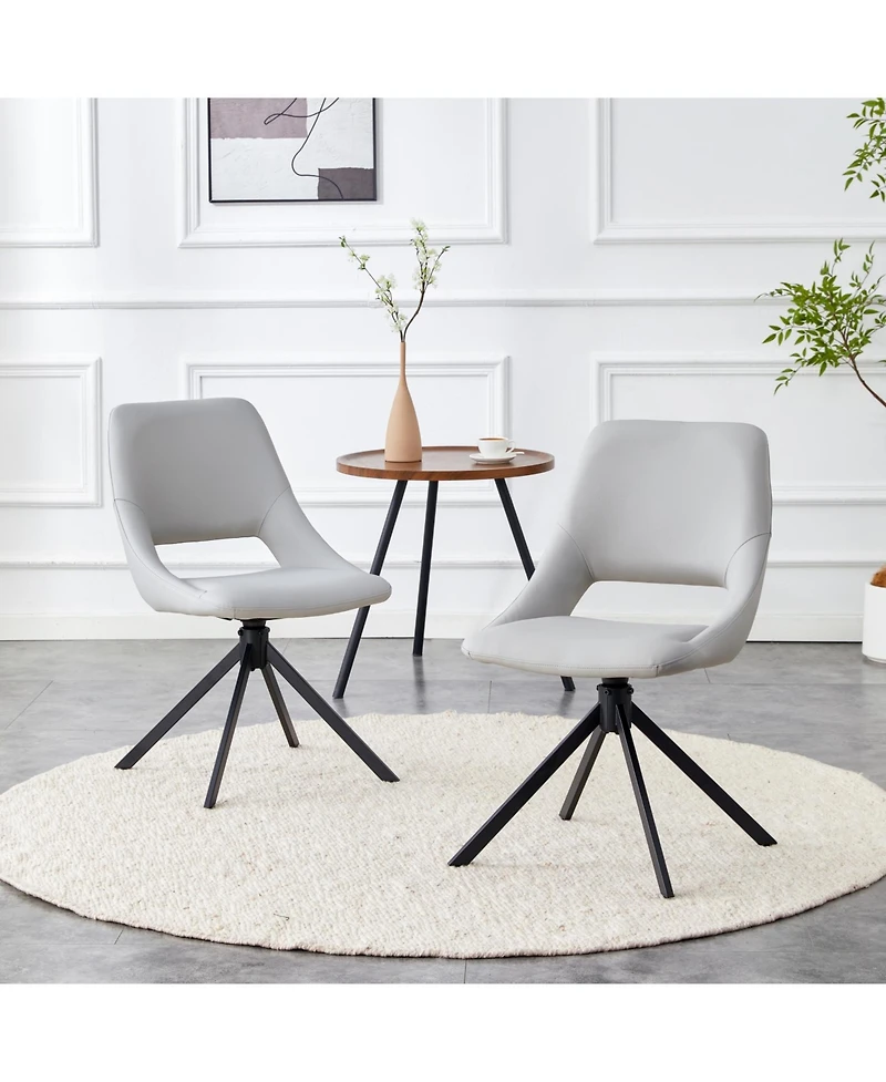 Streamdale Furniture Swivel Dining Chairs, Set of 2, Light Gray Leather, Gold Mesh