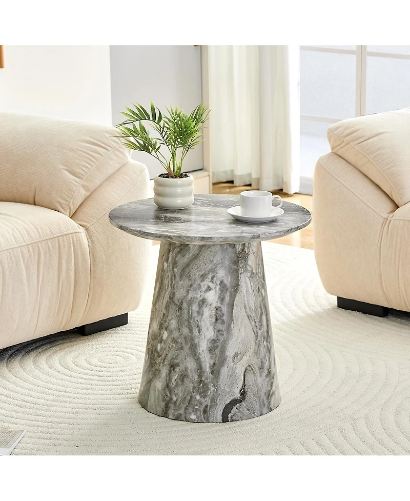 Elegant gray textured Mdf table with a 19.6" round top. Supports 300 lbs. Features adjustable feet and anti-slip pads for stability. Perfect for any room.