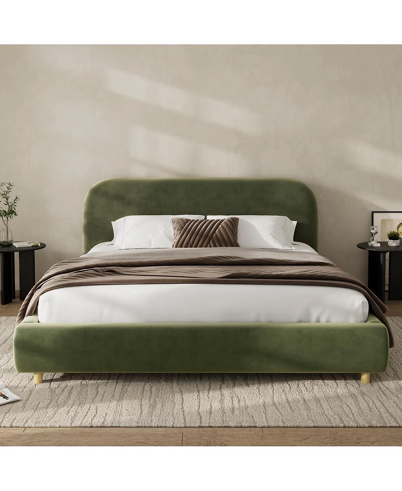 Streamdale Furniture Velvet Platform Bed with Curve Design Headboard