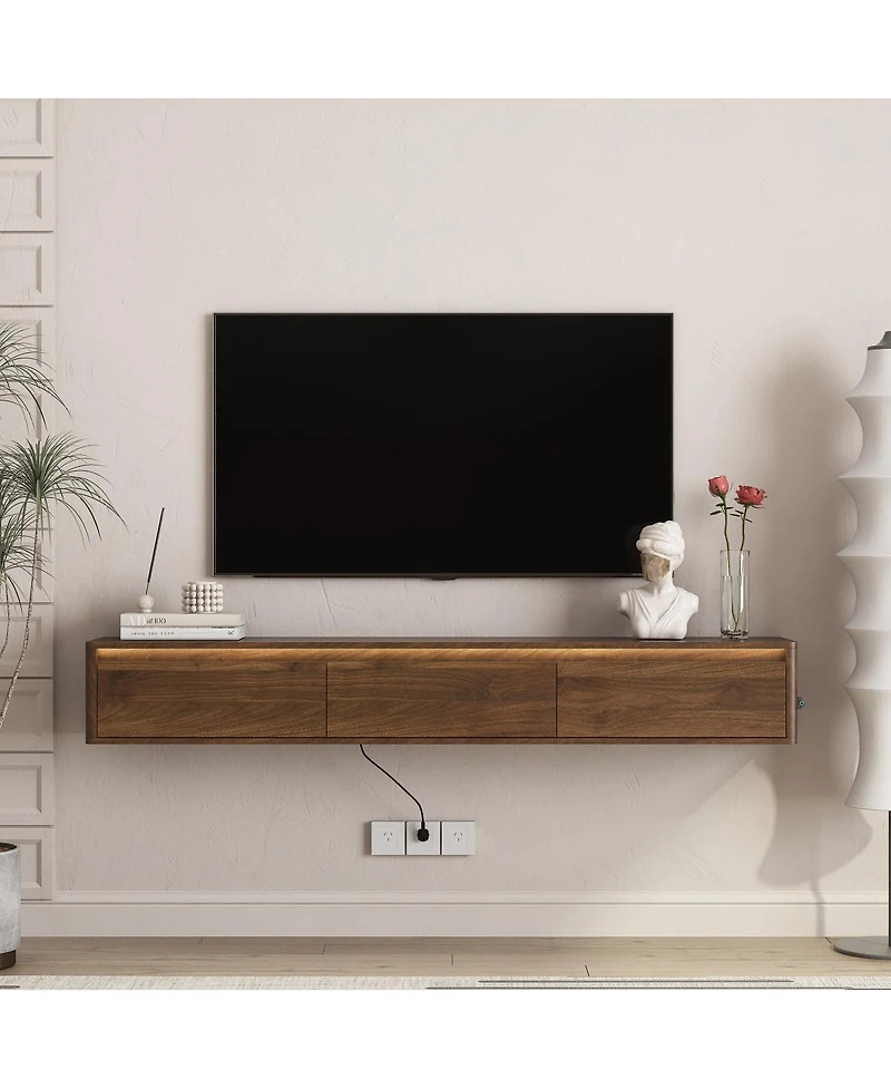Streamdale FurnitureFloating Tv Stand with Led Lights & Power Outlet