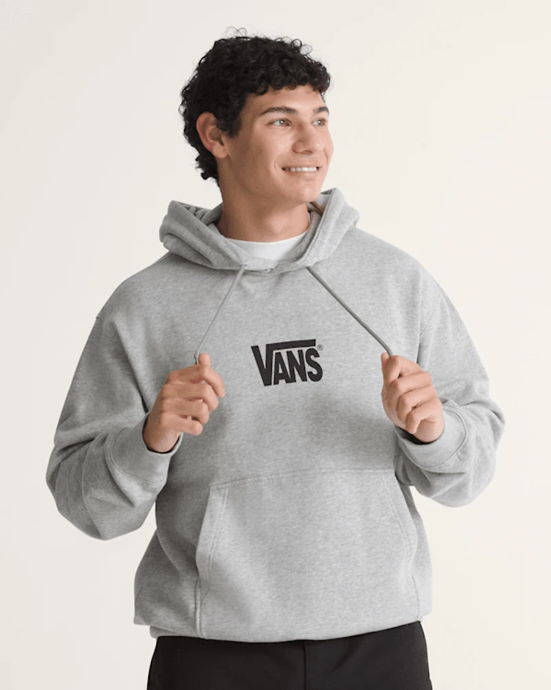 This relaxed-fit pullover hoodie delivers classic Vans style and cozy comfort for everyday wear. The midweight fleece fabric provides just the right amount of warmth, while the roomy kangaroo pocket offers a place to warm your hands. With its simple logo design, it's an easygoing essential that pairs with anything in your closet.