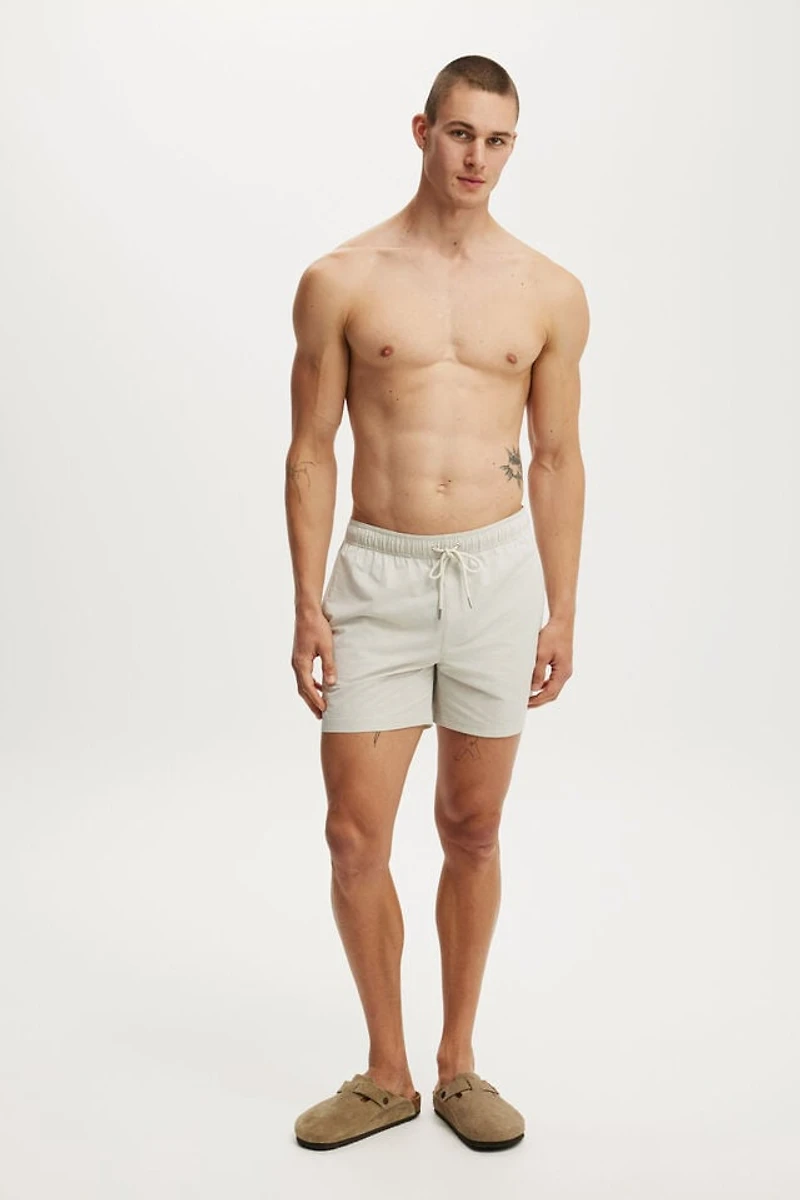 Our classic swim shorts are cut from stretch polyester with a stone seersucker texture. Designed with a full mesh lining and elasticated drawstring waist for a secure fit.