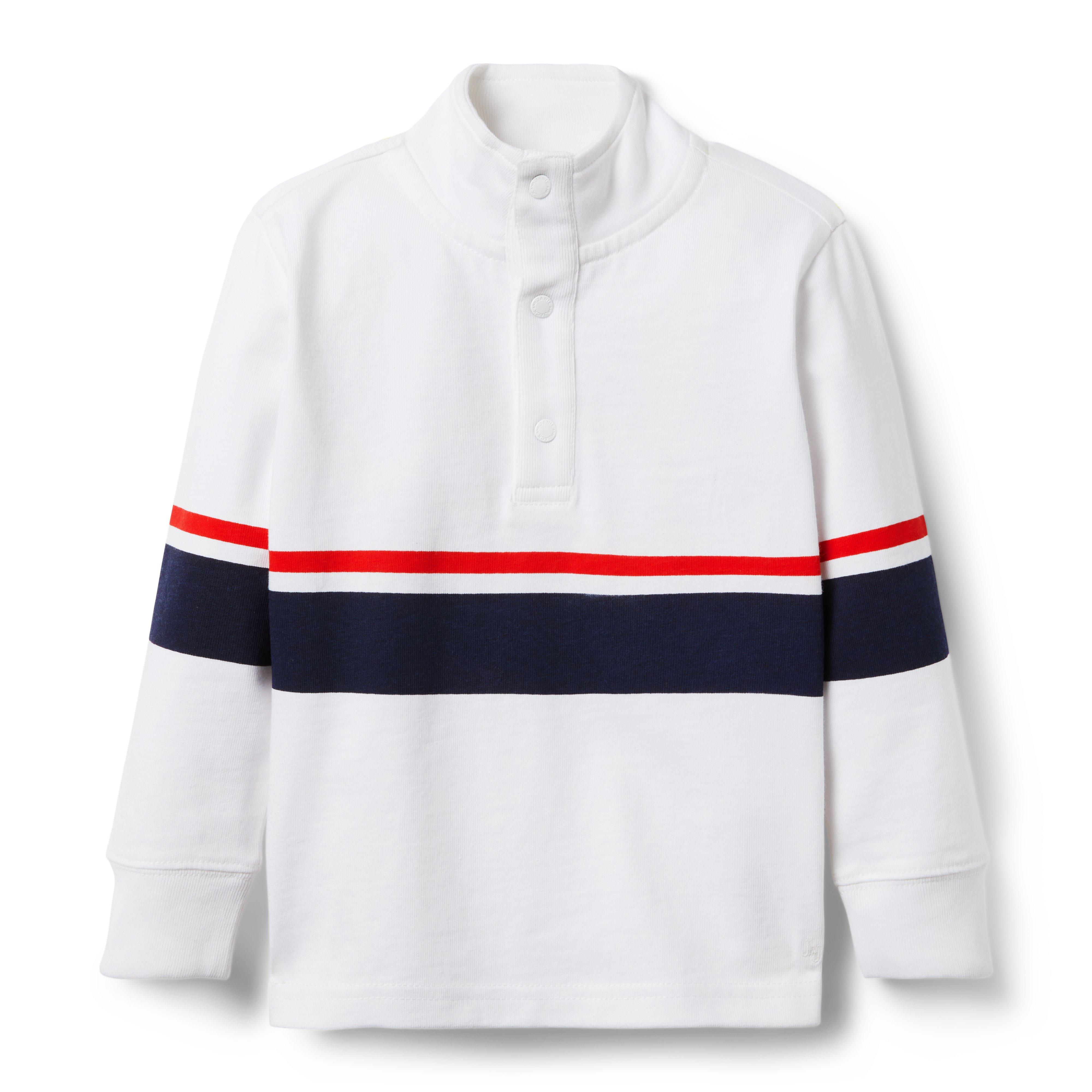 The perfect choice for just about any occasion, this classic pullover has a mock neck and a half-snap design. Made in soft cotton jersey with screenprinted stripes, it looks just as good on its own as it does layered up. 100% Cotton Jersey Long Sleeve Half Snap Placket Hem Vents Machine Washable; Imported