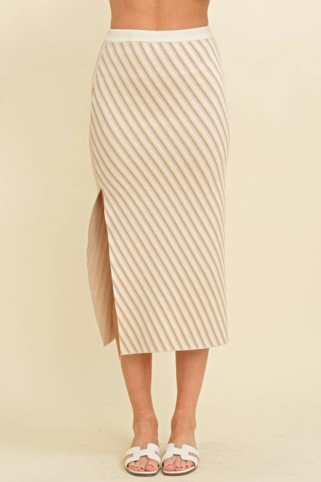 Karen Kane Ribbed Knit Side Slit A-Line Midi Skirt