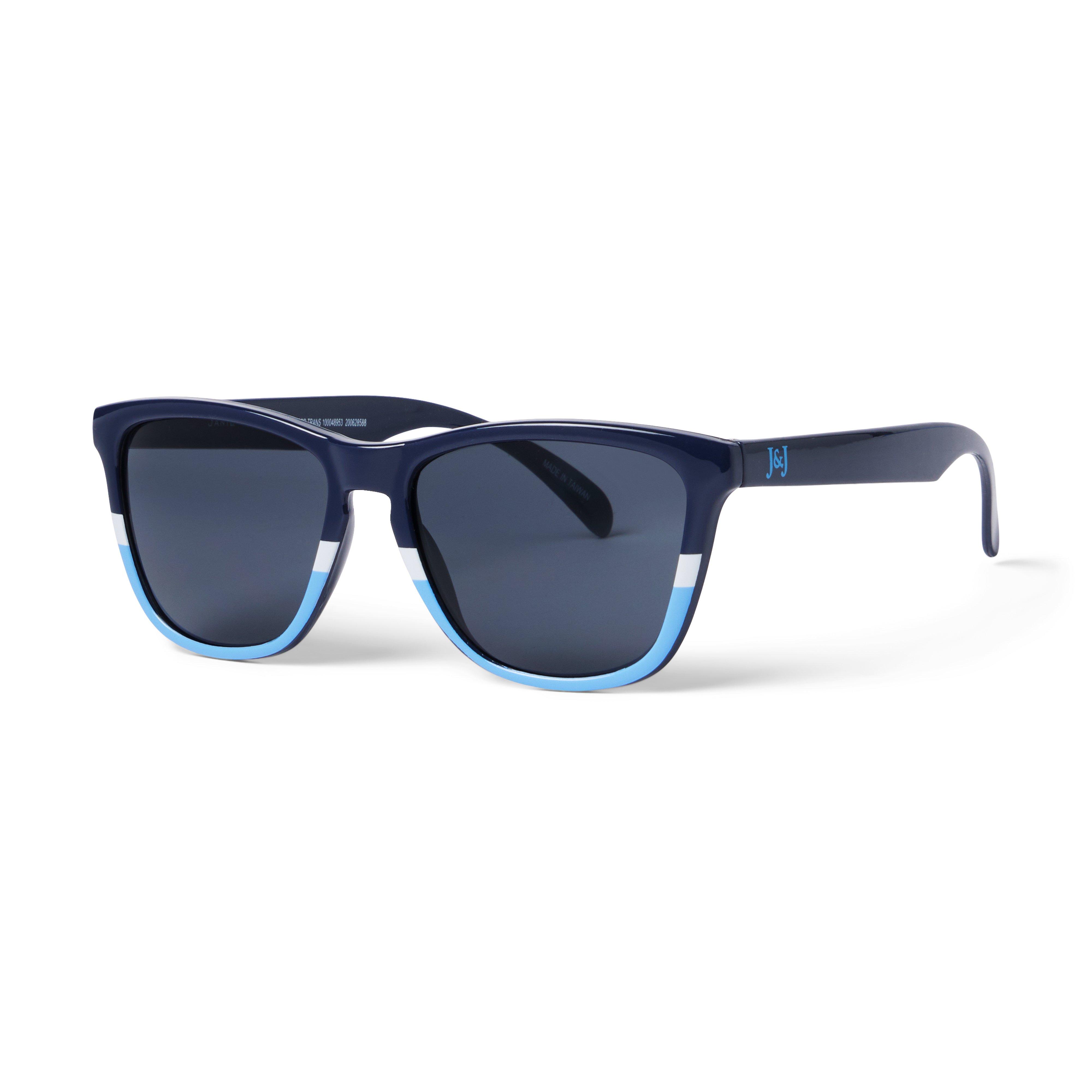 A classic pair with stripe details and tinted UV lenses. Featuring flexible rubber arms on size 0-2. Manmade Material Polyurethane Frame; UV Lenses Flexible Rubber Arms (Size 0-2 Only) Spot Clean; Imported