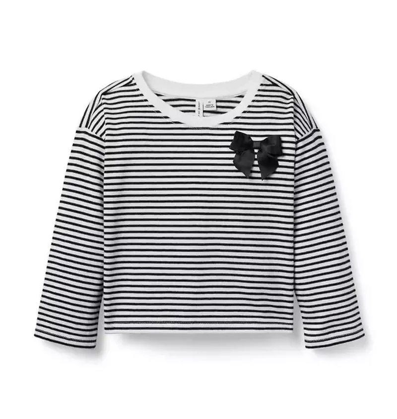 A standout in classic stripes. Designed with a drop shoulder and a bow detail to tie it all together. 100% Cotton Rib Long Sleeve Hem Vents Online Exclusive Machine Wash, Inside Out; Imported