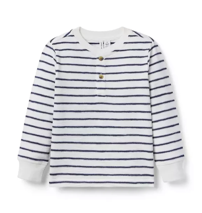 A cozy tee for every day, our striped henley in soft slub jacquard is perfect on its own or layered up. 100% Cotton Slub Jacquard Long Sleeve Half Button Placket Now Including Tween Sizes Up To 16 Machine Washable; Imported